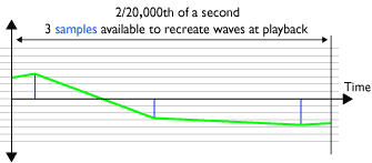 Sampling (A to D) at 44.1KHz of one 20,000Hz cycle (hi treble)