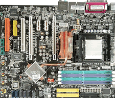 MotherboardThe motherboard is the large printed circuit board to which are attached all the other hardware device. Some of these devices are connected via cables, others plug into "expansion slots", whilst others are soldered or fitted to the board directly.