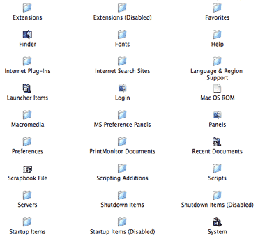 Mac OS9 system folder with SOME of its contents shown